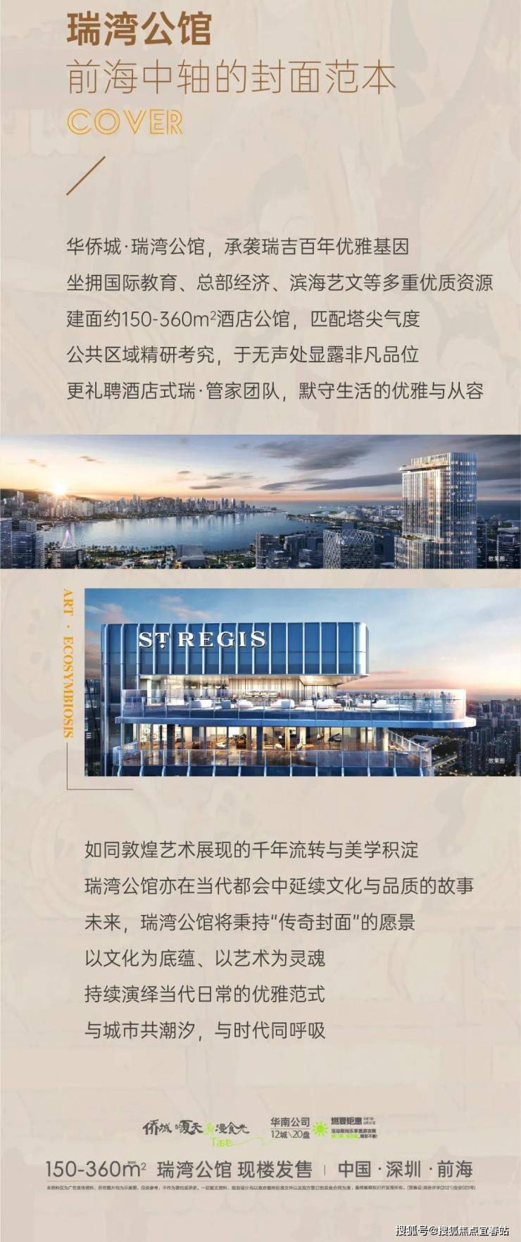 深圳华侨城瑞湾府,前海宝中230米垂直综合体,坐拥190-360㎡大平层、瑞吉酒店及瑞湾荟商业,45°旋转设计双面海景,毗邻欢乐港湾与壹方城,私享瑞吉云端服务与千亿级湾区配套,现楼4.5万/㎡起。