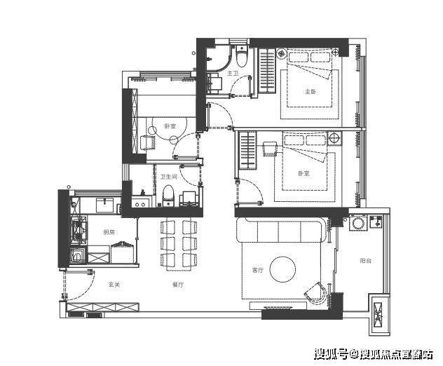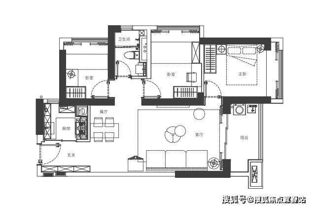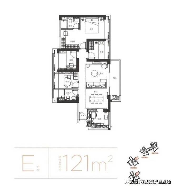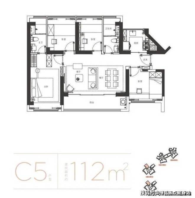 家政阳台定位,满足多人就餐,主卧独立卫生间