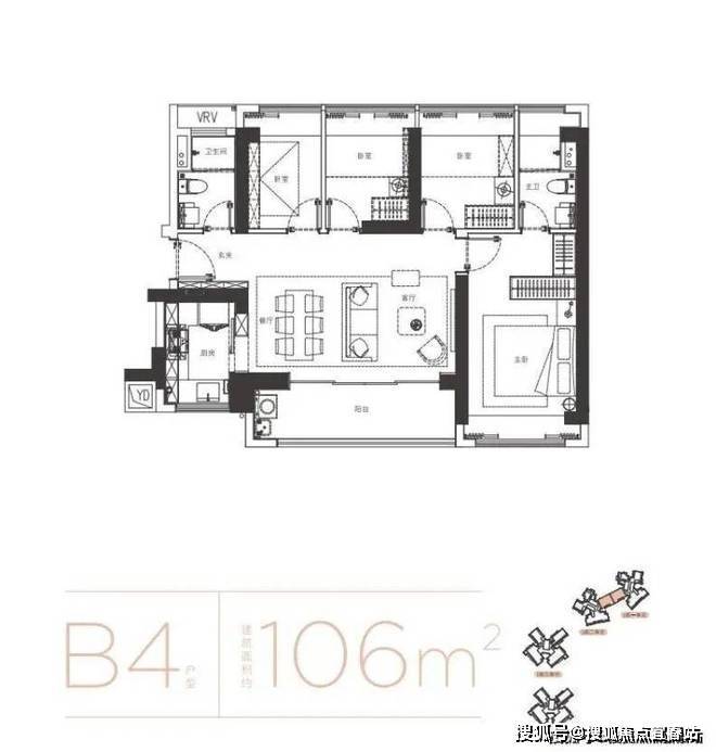 户型面积布局106平三房两厅两卫