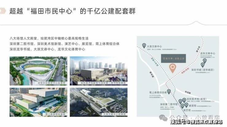 周边涵盖深圳美术馆新馆(试运行)与深圳市第二图书馆(已开放)两大深圳新十大文化地标;近享深圳文化馆新馆(在建中)、简上体育综合体、深圳书城(龙华城)等市级文体项目,打造10分钟文体服务圈,构建对标世界的艺术文化生活区。