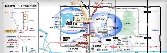 乘8号线北延段支线,迅达越秀、花都,串联广州北站和白云棠溪TOD。
