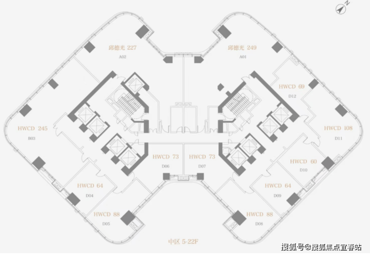 3. 双核心筒弧形设计——高效与私密并存
