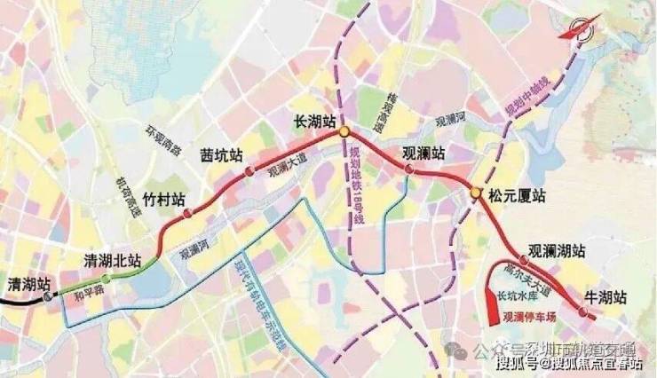 4号线地铁上盖物业。阳基御龙湾紧邻观澜大道西侧,整体沿大道南北纵向布局。规划的商MALL和地铁4号线竹村站直连。