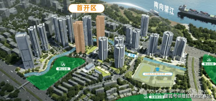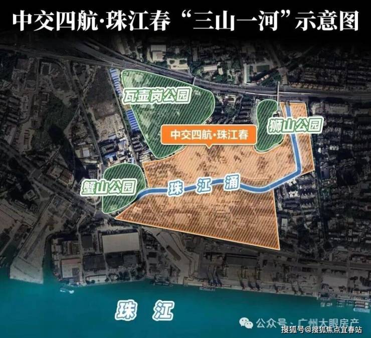 形成一个“三山一水”的自然景观格局,相当于做到内有河涌滨水园林,外有公园、山景与江景的立体生态。