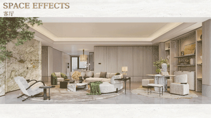 大户型石材迭代焕新,甄选意大利达芬奇奢石,以自然纹理与艺术质感彰显雅奢品味。