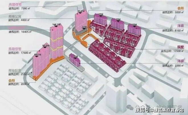 B区(北区):计容积率建筑面积约3.9万平方米,规划为2栋建筑高度约110.85米、共34层的高层住宅。