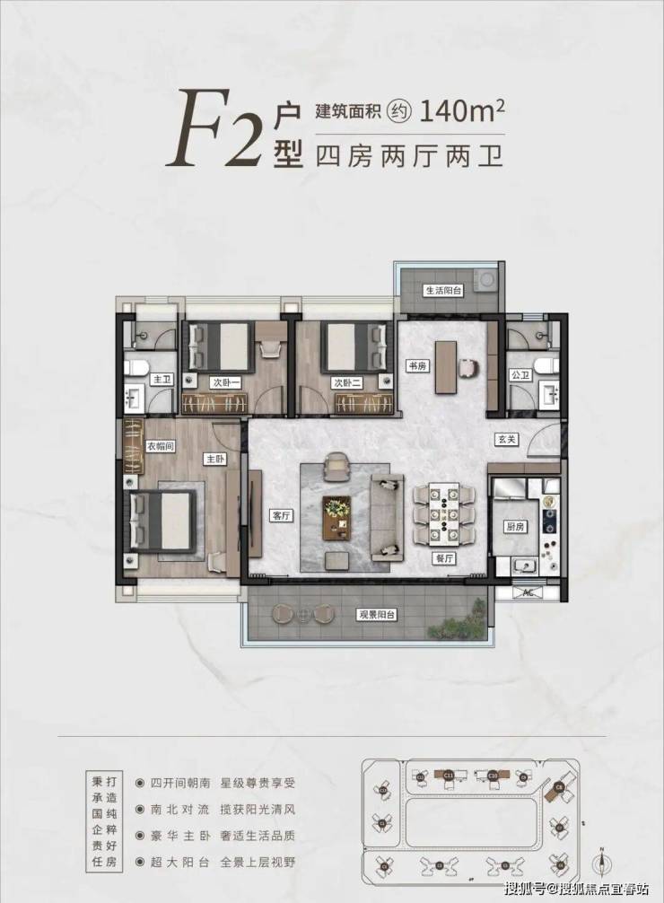 项目的户型设计充分考虑到高端人群的需求,提供100-166㎡的阔景舒适户型,每栋楼均配备双入户大堂,确保居住体验的尊贵与私密。全南向、双层隔音玻璃的设计有效隔绝外部噪音,为住户提供安静、舒适的居住环境。