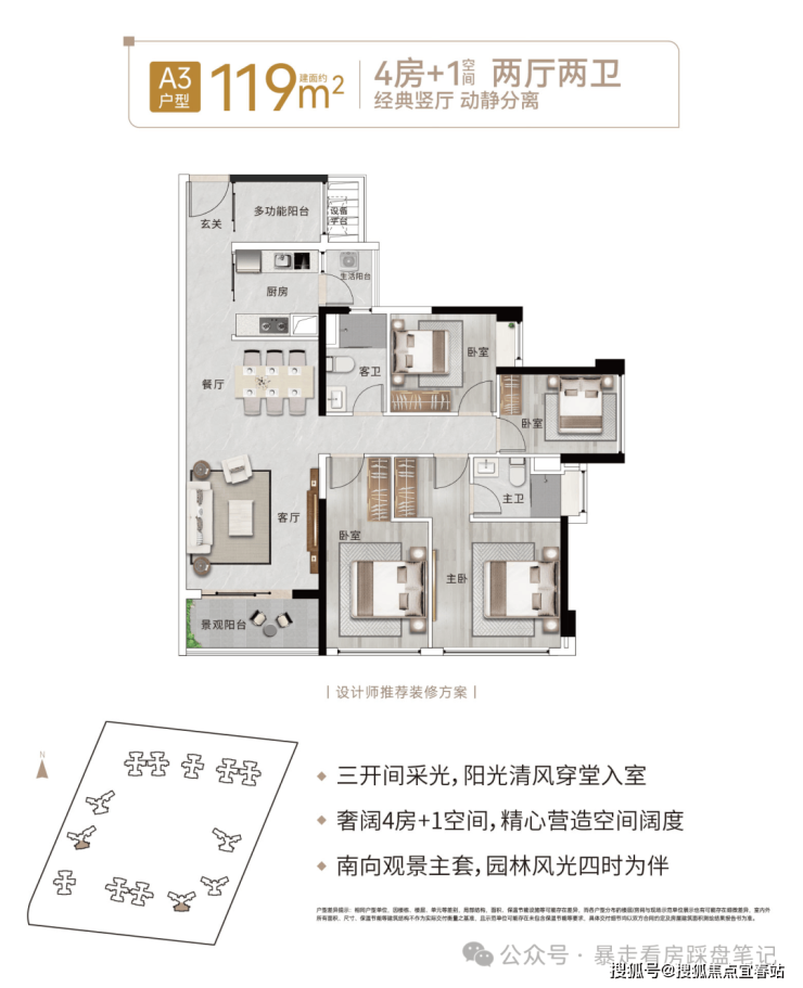 🔅约76-88㎡3房+1空间、119-194㎡4房+1空间至五房,正南向阳光户型,+1空间更实用。