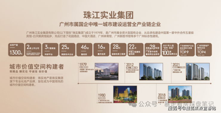 🔅珠江实业集团:深耕广州46载,广州市属国企中惟一全产业链企业,城脉地标缔造者,建设白天鹅宾馆、中国大酒店、花园酒店、颐德公馆、珠江花城等城脉地标。