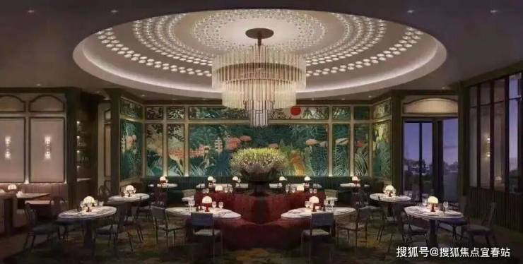 宴庭:34F (以粤菜为主,主厨曾工作过新荣记,丽苑以及其他米其林餐厅,餐厅带有户外露台用餐区域,大厅可容纳202位客人同时用餐 ,四个包房分别可容纳8-14位客人)