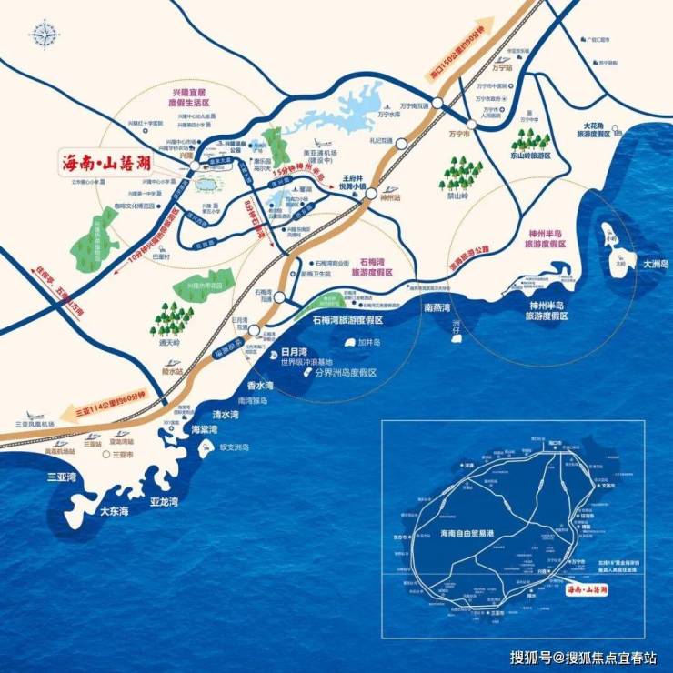 30分钟车程可达日月湾、南燕湾、神州半岛、海南最美公路等著名海边景区。
