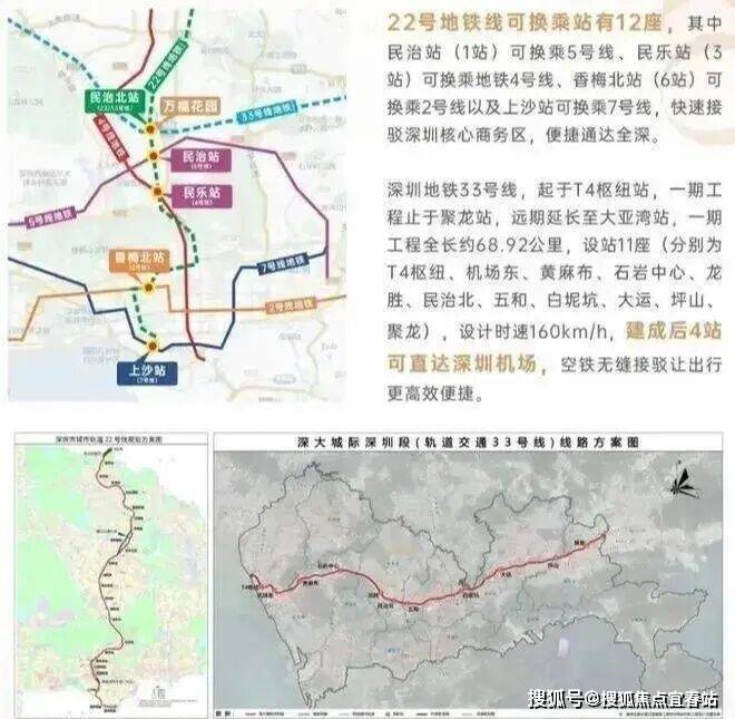 【交通配套】:项目距离地铁口仅约200米,乘坐地铁22号线(在建中,预计2028年通车)南行,5站到福田,9站直达福田上沙站,还可便捷换乘5号线、4号线、2号线、7号线,北行直抵东莞;乘坐地铁33号线(在建中,预计2026年通车)5站可直达深圳机场。
