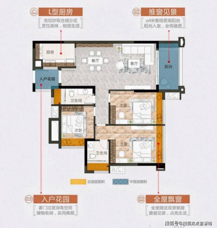 赠送观景飘窗,窗外阳光、美景引帘入室