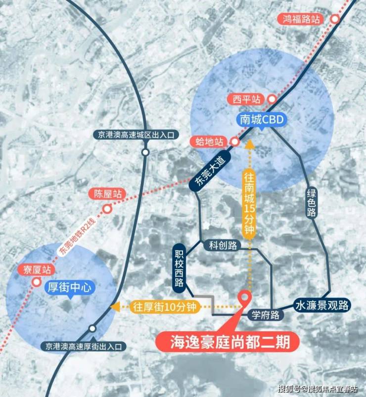 项目位于学府路,经科创路直达东莞大道,近邻R2线蛤地站,1站西平,2站国贸,直抵国贸、西平、厚街等繁华商圈。