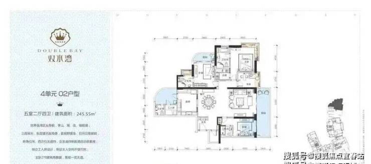 245.55㎡五室二厅四卫,三面采光,洋溢轩昂气度;主卧270度转角飘窗,观野狸岛、日月贝及无敌海景,饱揽城市繁盛;本项目臻品单位,海景资源值得一世珍藏;⛅☀︎珠海双水湾售楼处电话:400-119-1130☎☎☀︎