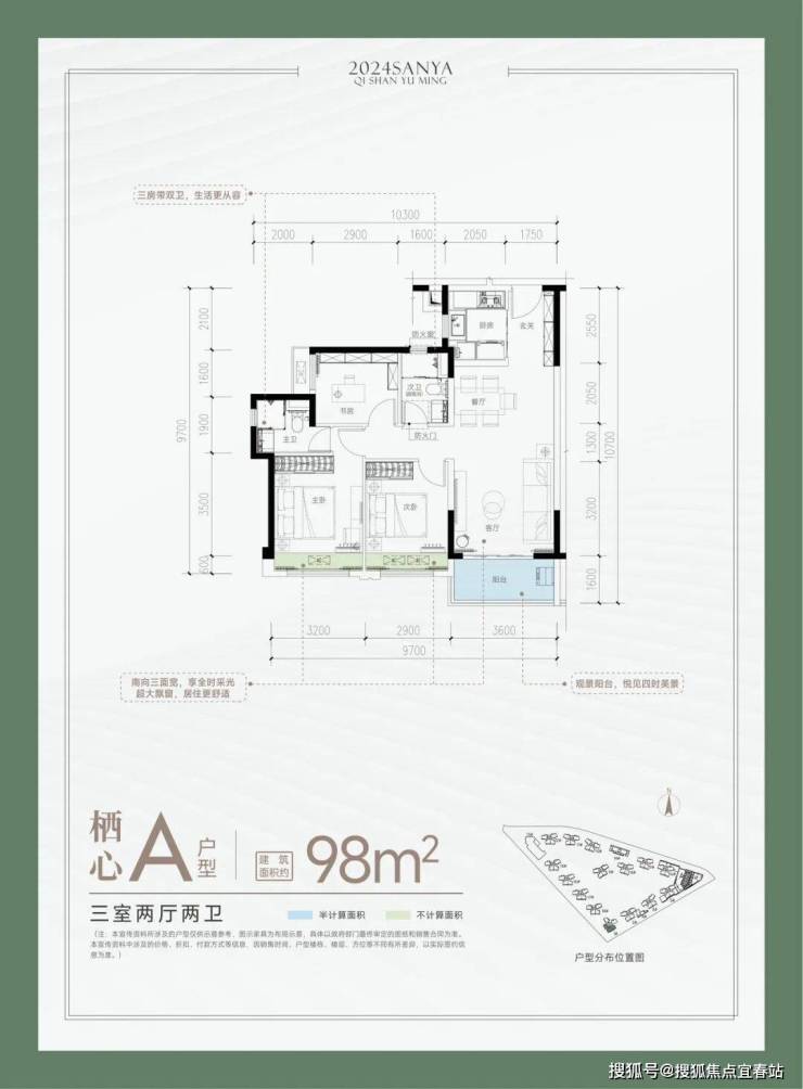 📍栖心 A户型-建面约98㎡ 三室两厅两卫