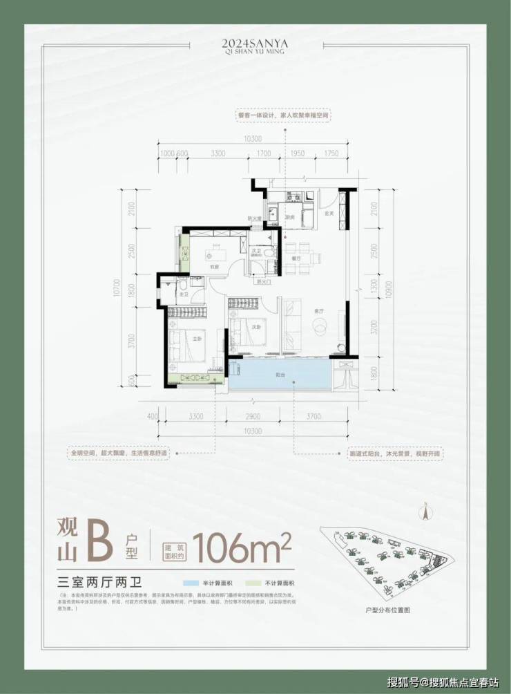 📍观山 B户型-建面约106㎡ 三室两厅两卫
