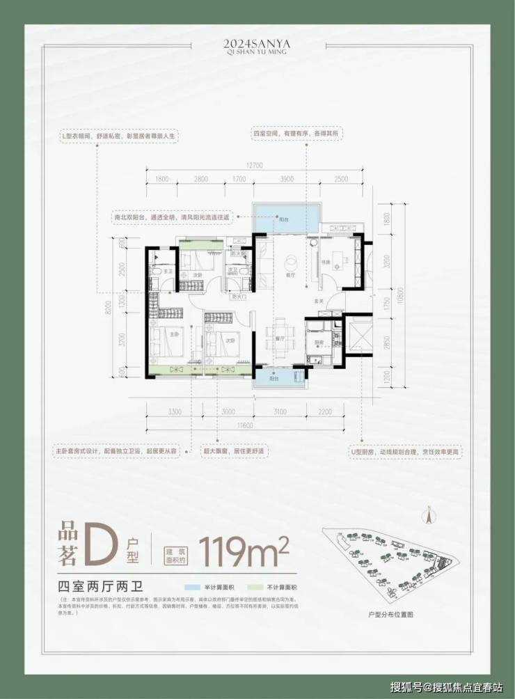 📍品茗 D户型-建面约119㎡ 四室两厅两卫