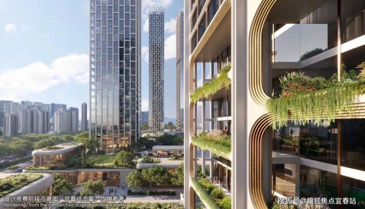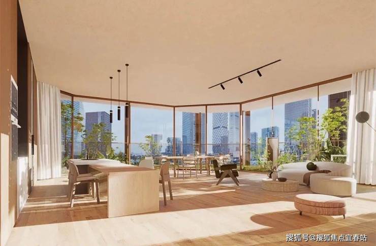 自然融合:效果图显示阳台设计明显,绿植覆盖丰富,强调自然与居住空间的融合,部分超高层观景面采用落地玻璃,无需阳台即可观赏海景。