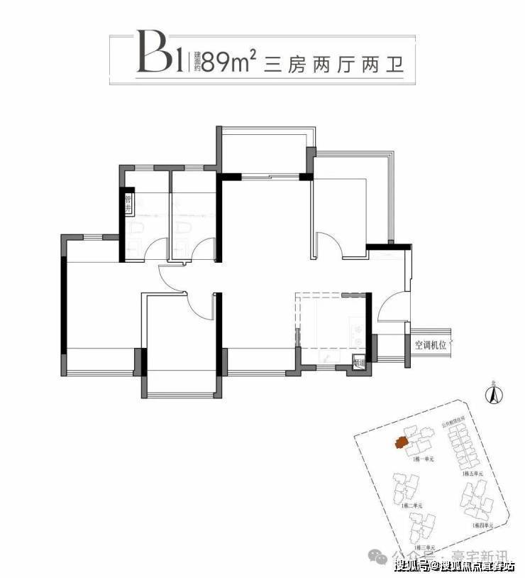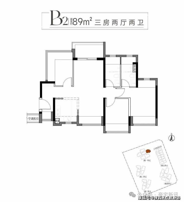二:建面约89平方B1B2户型三房两厅两卫