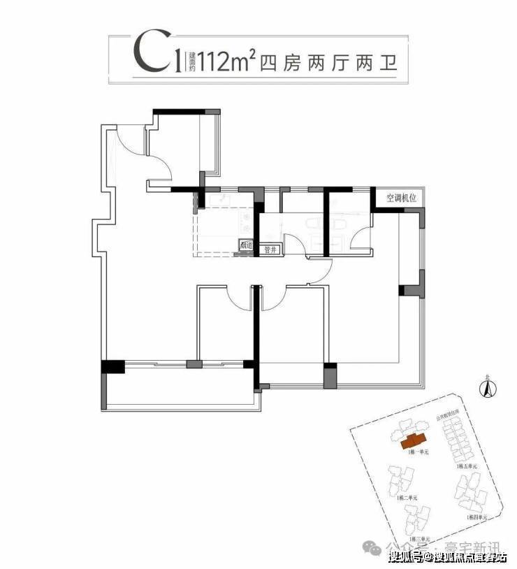 三:建面约112平方C1户型四房两厅两卫