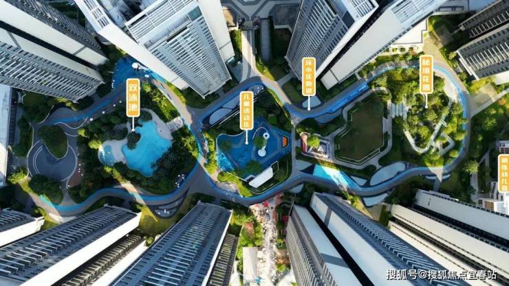 【约7.1万方中央园林】约1000方儿童游乐场+度假式双游泳池(已开放)+约900米乐活跑道等