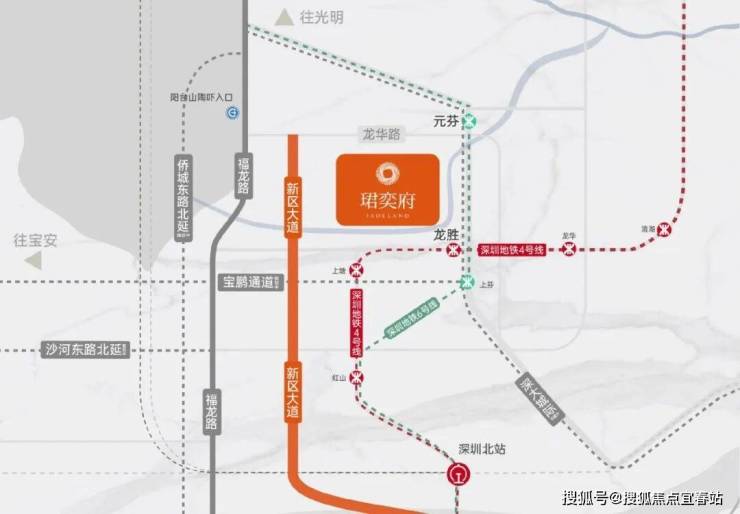 地铁:4号线龙胜站(约500米)、6号线元芬站(约800米),3站直达深圳北,5站速抵福田;城际:深大城际(在建中),3站直达机场;路网:新区大道、福龙快速路等主干道,串联福田、南山、宝安,通勤效率提升约20%。