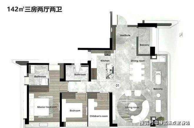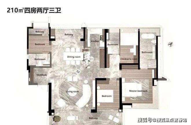 品越华府的户型方正,大阳台、飘窗、专梯一个不少。