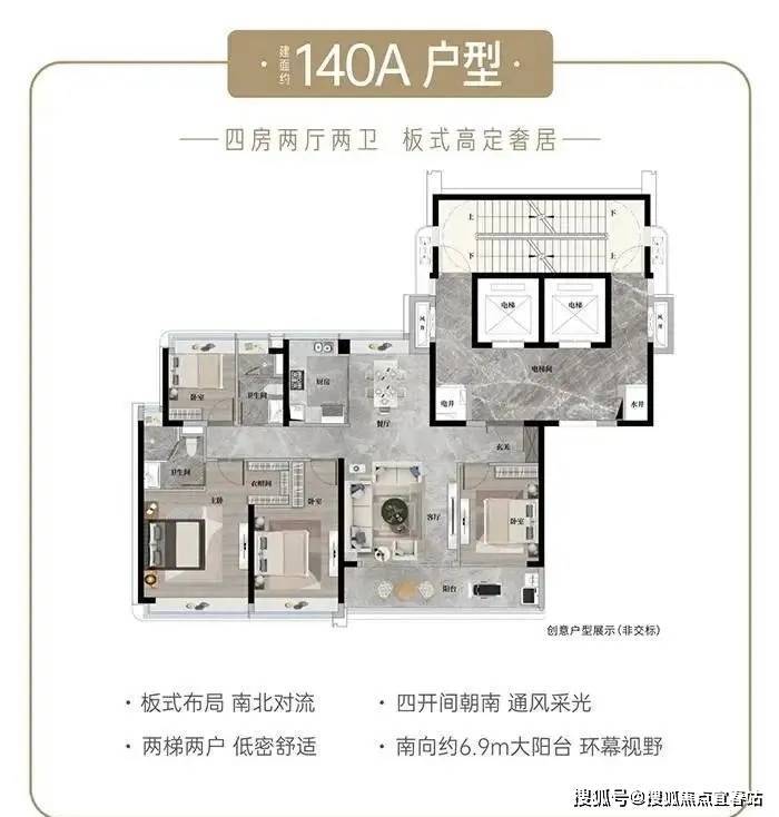 【1】1栋、2栋、10栋,建面约140平A,板式大四房|1字大平层南北通透|2梯2户专梯入户;