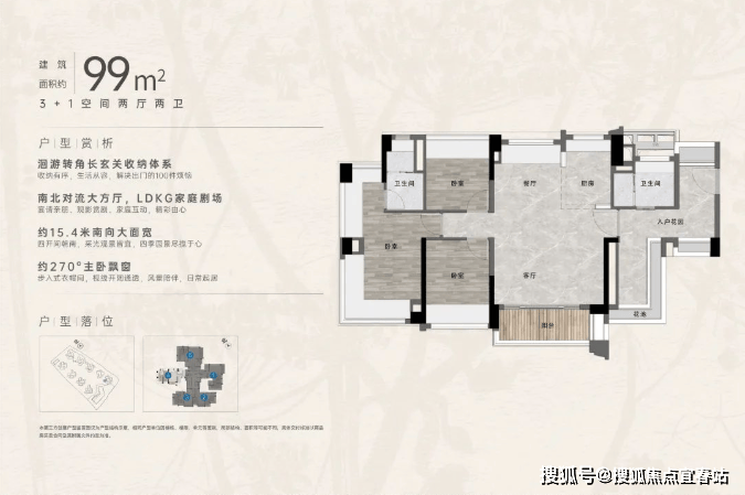 3⃣️建面约99㎡ 3+1空间(高层升级建面约108㎡)
