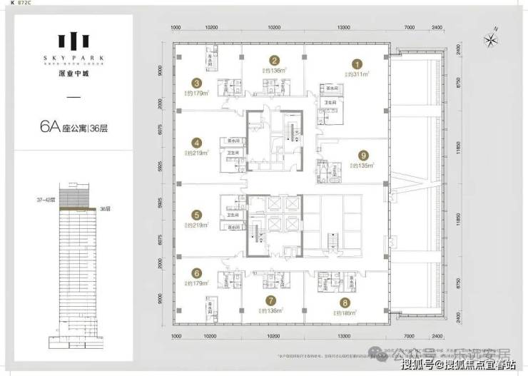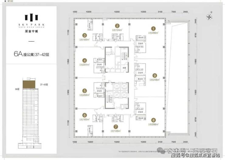 占地约3.9万㎡,总建筑面积约36万㎡,容积率约6.79,绿化率:30%,管理费9.9,车位数2193个,总房源有1590套,整个项目包括3栋住宅、1栋5A超甲级写字楼(含63套总裁公寓),1栋超高层公寓,约2万㎡商业配套,及幼儿园、露天泳池等配套。