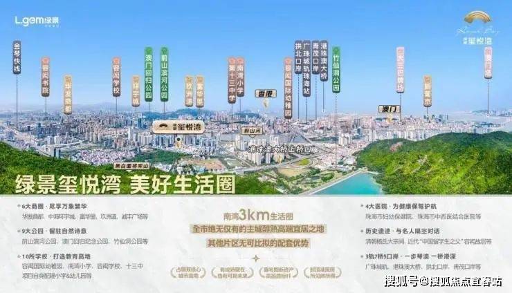 近在咫尺的三甲医院、珠海最高端国际教育资源(闳国际幼儿园、容闳学校等)、项目自身配建的12班幼儿园及24班小学(小学纳入省一级小学-珠海市香华实验教育集团)。