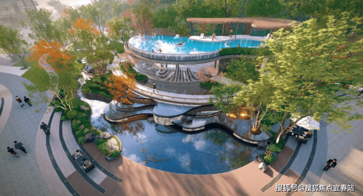引龙下山,引水入园:瓏樾山通过抬地式园林景观和层叠水系将塘朗山龙脉引入园林,打造深圳唯一山地多层无边界立体泳池,造就与自然平等相处的“流水森林”