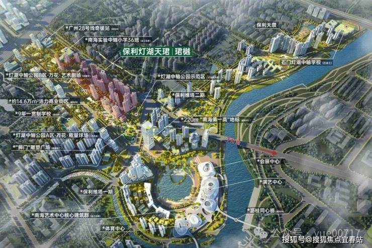 项目区位:位于灯湖北大沥地界的南海之眼板块,一路之隔是南海艺术中心,隔着佛山水道对面是千灯湖公园
