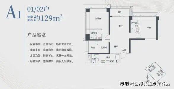 113㎡的3房2厅2卫:位于2-30F,全朝南向,带6.5米宽大阳台。