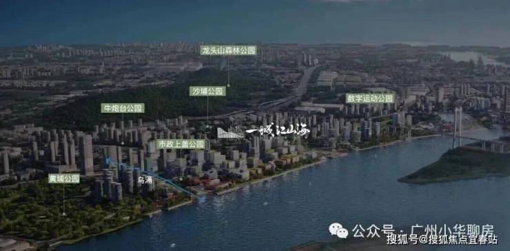 拥揽珠江一线景观、关键还是南向望江,这是连琶洲都做不到,还背靠5000亩龙头山森林公园,南望珠江水,山水相依,所开发地块约90%界面朝向公园,打造 300 米见绿,500 米见园;加上片区规划“5+9”的“公园城市”,一流生态环境实现出门即入园