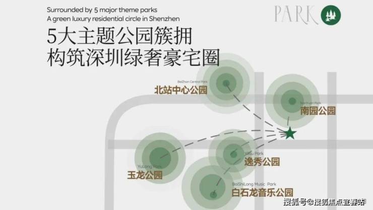 南园公园、北站中心公园、逸秀公园、白石龙音乐公园、玉龙公园环绕;