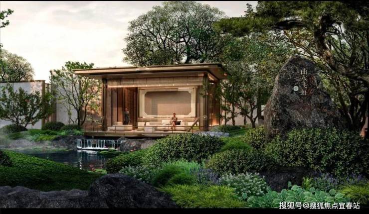 园林采撷《梁园飞雪图》画中意境及神韵,引入曲水飞虹、万倾涵碧、松间、观澜、林隐等景观组团,再现“枯山水”东方禅意画卷,缔造具有东方韵味的新中式之美。