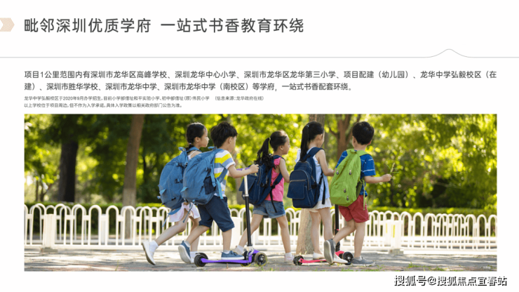 • 全龄教育举步达:高峰学校、龙华中心小学、龙华第三小学、项目配建(幼儿园)、龙华中学弘毅校区(九年一贯制)等5学府,一站式书香配套环绕