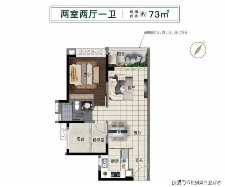 建面约73㎡的江景两室,是目前项目最受欢迎的户型,也是适合刚需客群的选择。