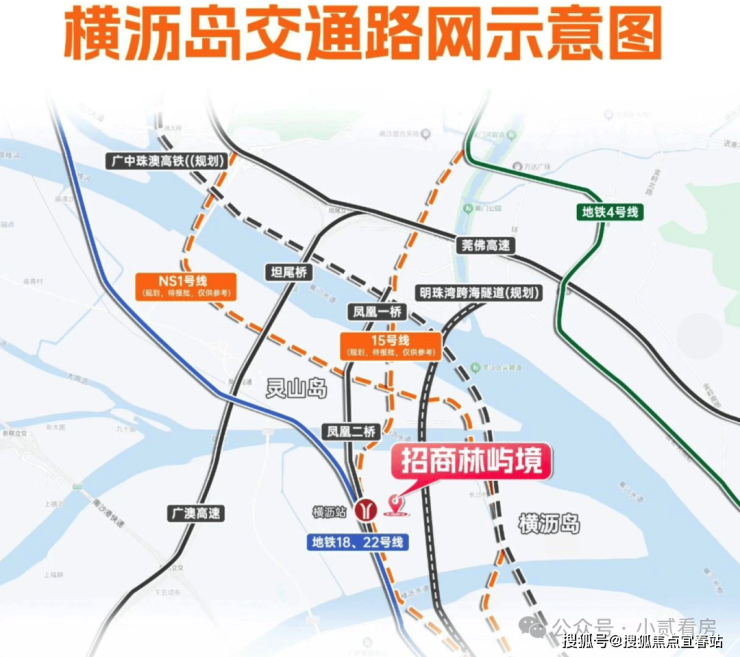 南沙招商屿境位于广州市南沙区横沥岛,由知名房企招商蛇口倾力打造。项目占地约 3.1 万平方米,总建筑面积约 12.36 万平方米,容积率 2.5,绿化率 30.41%,共规划有 7 栋楼,提供 806 户高品质住宅。其地理位置优越,交通十分便利,距离地铁 18 号线横沥站仅约 400 米,可快速通达珠江新城、琶洲、万博等重要商务区,横沥岛未来还将有多条轨道交通线路经过,包括 15 号线、NS2 线等,进一步提升交通便利性。同时,周边也有多个城市主干道,自驾出行同样便捷。