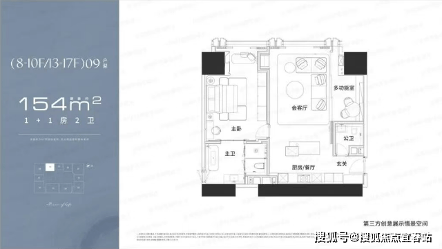2. 154㎡1+1房两厅两卫(灵活改善户型)