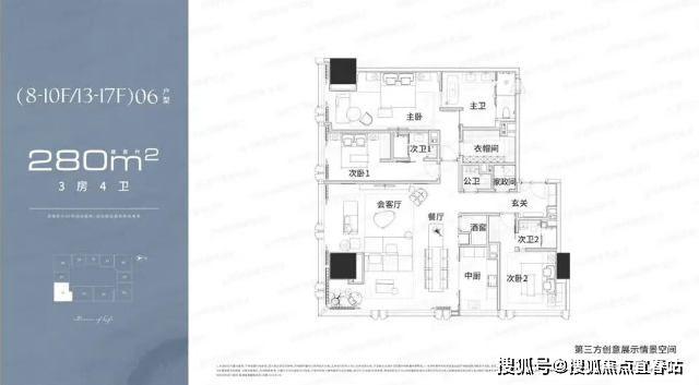 户型规划:主力户型覆盖118-612㎡全维度1-4房产品,按楼层划分不同户型区间,其中5-10F/13-17F为118~278㎡、12F为175~306㎡、18F为124~398㎡、19F为132~327㎡、20F为150~617㎡,全部为高端公寓产品,确保圈层纯粹性。