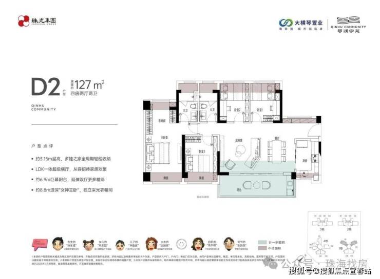 在琴湖学苑,大横琴置业超越性地打造了3.15-3.3米区间层高。相比市场主流的2.9米层高,琴湖学苑高出约0.25-0.4米,为家庭生活拓展更大想象空间,延伸更丰富的互动场景:
