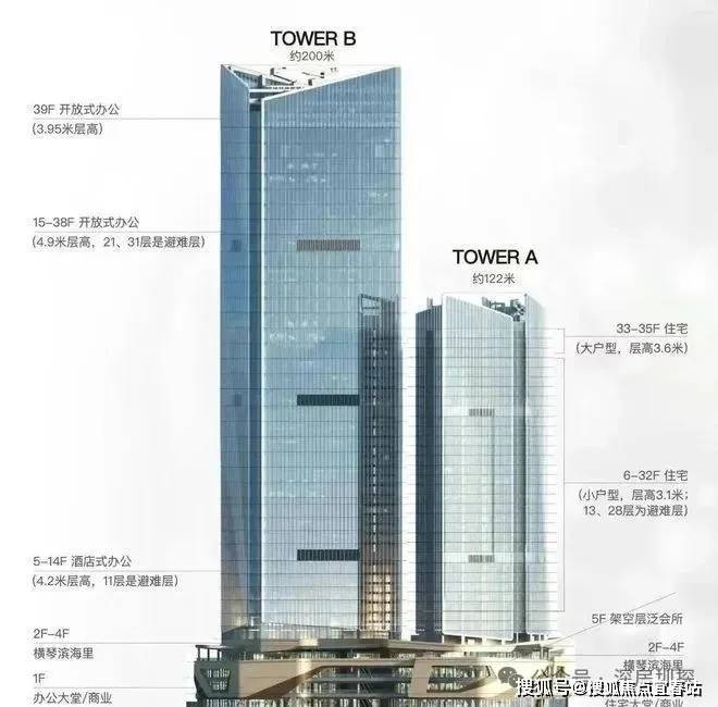 整体业态:集商务写字楼、高端商业、空中会所,以及拥有70年产业高端住宅等多元业态于一体的金融岛尖地标综合体