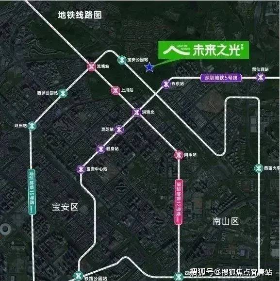 以项目为中心,2公里即可到达宝安中心,4公里到留仙洞、5公里到南山科技园,密布的轨交路网更是进一步将未来之光与各个核心点相连接。