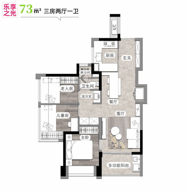 建面约73㎡户型图