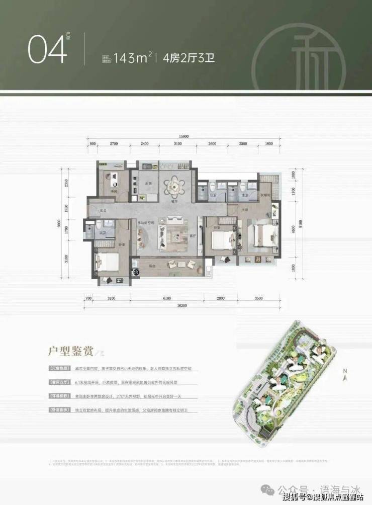 本次预计加推的3号楼位于项目园林的中心位置;户型布局与4号楼一致,128㎡的01和02户型,动静分区格局,5.2米的客厅大开间,阳台直瞰亲水乐园的景观。107㎡03户型,南北通透的高性价四房,阳台可直接欣赏厚街中心的繁华城市景观;143㎡的双套间04户型,更适合三代同堂,6.1米开间的宽敞客厅,阳台更是可以远眺福神岗公园;