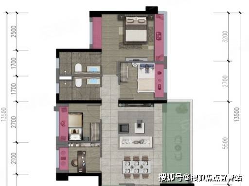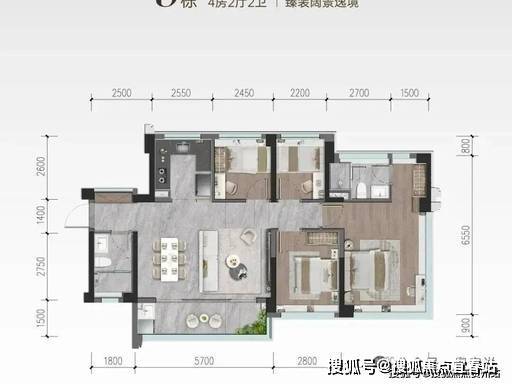 格局:一梯一户、专梯入户、南北通透、横厅设计、双套卧