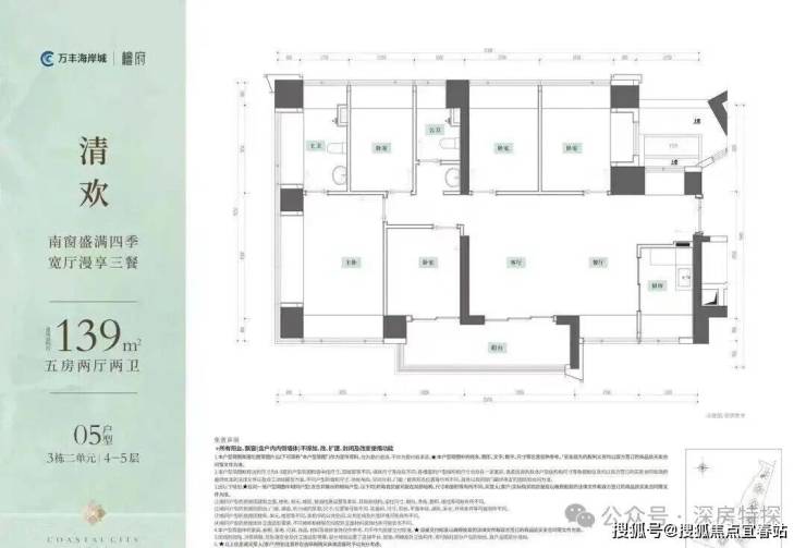 万丰海岸城檀府于10月25日开盘,开盘享受99*97*98,约94折优惠。折后总价406万起,折后单价4.57万起,首推89-91㎡三房二卫,93-103-121-125平米的四房二卫,139㎡的五房二卫,169㎡的六房。据了解本次使用率高达104%。